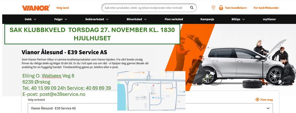 E39 Service AS Personbildekk vinterdekk,piggdekk, piggfritt,SUV-dekk, varebil- og bobildekk, MC-dekk, dekk for tunge kjøretøy, Dekkhotell, dekkskifte, balansering av dekk, dekkreparasjon – dekkservice.